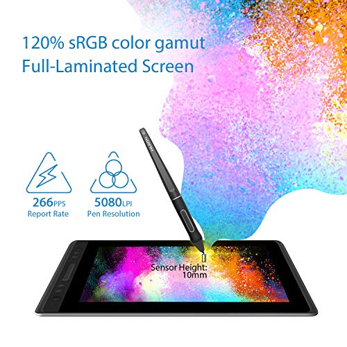 8192 Drucksensitivitätsstufen, 266 PPS Abtastrate, 5080 LPI Handschriftauflösung, 120 % sRGB Farbskala, 10 mm Sensorhöhe, 178° volle Blickwinkeln, 25 Millisekunden Reaktionszeit und 14 g anfängliche Aktivierungskraft entsprechen alle den branchenhöchsten Konfigurationen.